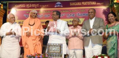 Event Description : Chief Minister K Siddaramaiah with Sri Shivratri Deshikendra Swamy, Ministers HS Mahadev Prasad and RV Deshpande with Jnanpith Awardee Chandrashekhar Kambar and others seen releasing 104 Women will Inspire Book by Dr Geeta Mahadev Prasad, at Bharatiya Vidya Bhavan, in Bangalore on 31st of December 2014