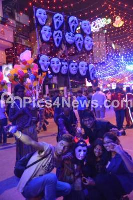 Photo Caption : Youths taking selfies, during the New Year Bash at Brigade Road, in Bengaluru on Wednesday 31st December 2014