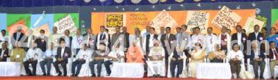 Photo Caption : Manohar Parikar, Union Defence Minister being felicitated by Union Minister Ananth Kumar, Space Scientist UR Rao, Shri Shivrathri Deshikendra Mahaswamy, Tejaswini Ananth Kumar and others felicitated beneficiaries, during the Adamya Chetana Seva Utsava, organized by Adamya Chetana, at National College Grounds, in Bengaluru on Thursday 1st January 2015