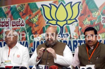 Event Description : BJP National President Amit Shah addressing press conference at State BJP Office, during his visits Bengaluru on 3rd of January 2015