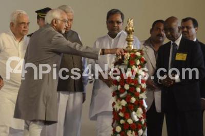 Photo Caption : Hamid Ansari, Vice President of India with Governor Vajubhai Rudabhai Vala, Chief Minister K Siddaramaiah, Higher Education Minister RV Deshpande and Panduranga Shetty and others seen lighting lamp to inaugurate Golden Jubilee Celebrations of RV Engineering College, at Premises, in Bengaluru on Tuesday 6th January 2015