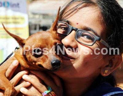 Photo Caption : Dog owners seen with their dogs during Dog Show, organized by Mysore Kennel Club, at Hebbal, in Bengaluru on Sunday 11th January 2015