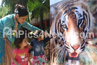 Photo Caption : Children watching Tigers Photo during the Press Conference on Kerala Tourism, at Hotel Lalit Ashok, in Bengaluru on Tuesday 13th January 2015