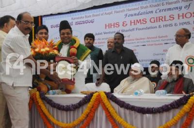 Event Description : Chief Minister K Siddaramaiah with Alhaj Moulana Mufti Mohammed Ashraf Ali, Alhaj Moulana Qadeer Ahmed and Former Union Minister K Rahman Khan unveiled the foundation stone of HHS and HMS Girls Hostel, at Cottonpet, in Bengaluru on Tuesday 13th January 2015