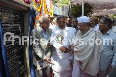 Event Description : Chief Minister K Siddaramaiah with Alhaj Moulana Mufti Mohammed Ashraf Ali, Alhaj Moulana Qadeer Ahmed and Former Union Minister K Rahman Khan unveiled the foundation stone of HHS and HMS Girls Hostel, at Cottonpet, in Bengaluru on Tuesday 13th January 2015