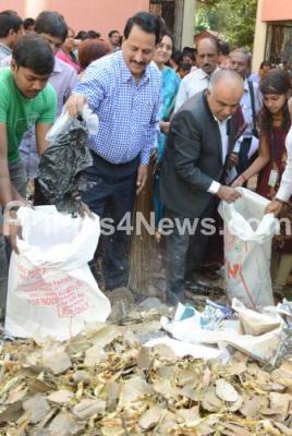 B Thimmegowda, Vice Chancellor, Bangalore University with staff participate in Swacch Bharath Abhiyaan, at Home Science College, in Bengaluru on Tuesday 13th January 2015