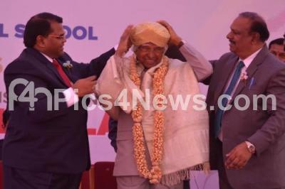 Photo Caption : APJ Abdul Kalam, Former President of India being felicitated, during the Annual Day Celebration of United International School, at School premises, Bagalur Main Road, in Bengaluru on Monday 19th January 2015
