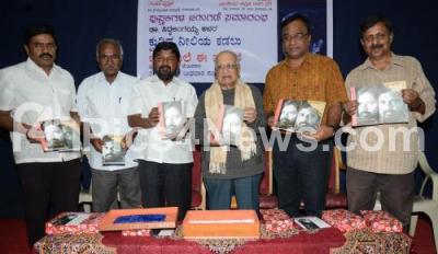 Photo Caption : Prof G Venkatasubbaiah with Prof Nataraj Huliyar, Prof Byramangala Raamegowda, Dr Siddalingaiah and others seen releasing the Kudiva Neeliya Kadalu and Aa Moole Ee Moole Books, at Kannada Sahitya Parishath, in Bengaluru on Wednesday 21st January 2015