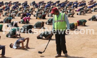 Photo Caption : School Students preparations for Parade and Tight Security arrangements for upcoming Republic Day Celebrations, at Manekshaw Parade Grounds, in Bengaluru on Thursday 22nd January 2015