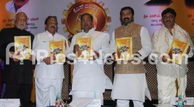 Photo Caption : K Siddaramaiah, Chief Minister with CV Rajappa, Chairman, KSIIDC, Ministers Roshan Baig and DK Shivakumar and MLA NA Haris seen releasing Souvenir, during the Golden jubilee Celebrations of Karnataka State Industrial and Infrastructure Development Corporation, at Chancery Pavilion, in Bengaluru on Friday 23rd January 2015