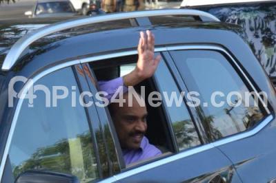 Event Description : Janardhana Reddy waved at the jubilant crowd before heading to his house after he was released from Parappana Agrahara Central Prison, in Bengaluru on Friday 23rd January 2015