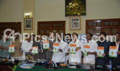 Photo Caption : K Siddaramaih, Chief Minister of Karnataka with Ministers Roshan Baig, UT Khader, Qamar ul Islam, NA Harris,Dr Abu Saleha Shariff, Syed Zameer Pasha, Executive Director CRDDP releasing the Karnataka Development and Diversity Indices brochure, during the Centre for Research and Debates in Development Policy, in Bengaluru on Friday 23rd January 2015