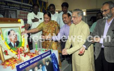 Photo Caption : Prof GK Govindarao with Indira Krishnappa, State Committee Member, DSS, Dr Keshava SR and others offering floral tribute to Dr BR Ambedkar, during the Seminar as part of Constituent Assembly of India, organized by Karnataka Dalita Sangarsha Samiti at Government Arts College, in Bengaluru on Sunday 25th January 2015
