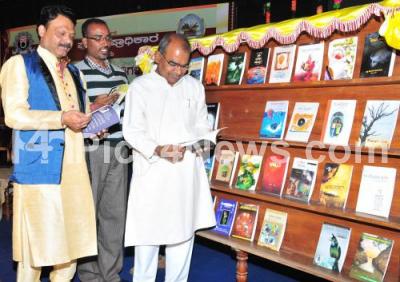 Photo Caption : Dr Banjagere Jayaprakash with KA Dayananda and Prof SG Siddaramaiah unveiled Various Kannada Books of Youth Writers, at Nayana Auditorium, in Bengaluru on Tuesday 27th January 2015