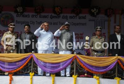 Photo Caption : KJ George, Home Minister with Ramlinga Reddy, Transport Minister, L Pachuau, DG and IGP, MN Reddi, Bangalore City Police Commissioner inaugurated 26th National Road Safety Week organised by Bengaluru Traffic Police, Transport Department and Bengaluru City Road Safety Committee at kanteerva stadium, in Bengaluru on Wednesday 28th January 2015