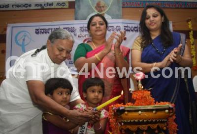 Photo Caption : Sushilamma, founder president for sumangali sevashrama seen with Divya Prabhu Gowda, president for Karnataka State Social welfare committee and Rupa, IPS, Joint CAR at the inauguration of the National Girl Child Day program at Gandhi Bhavan, organised by Karnataka State Social welfare committee, in Bengaluru on Saturday 31st January 2015