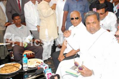 Photo Caption : Siddaramaih , Chief Minister of Karnataka seen with Sathish Jarakiholi and others during his visit to Bagalkot, on Saturday 31st January 2015