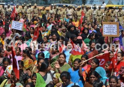 Photo Caption : Members of CITU and AITUC workers partake in protest rally from City Railway Station to Freedom Park to full fill their various demands, in Bengaluru on Tuesday 2nd February 2015