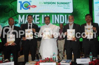 Photo Caption : Siddaramaiah, CM with K Radhakrishnan, ISRO chairman inaugurated the Vision Summit 2015, organized by India Electronics and Semiconductors Association at Hotel leela palace, in Bengaluru on Tuesday 2nd February 2015