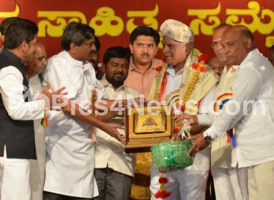 Photo Caption : BS Yedduyurappa, Former CM being felicitated by Dr Siddalingaiah and others at the 81st Kannada Sahitya Sammelana at Shravana Belagola, Hasan on Tuesday 3rd February 2015