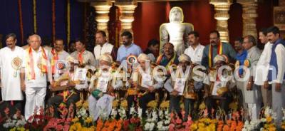Photo Caption : BS Yedduyurappa, Former CM felicitated historians at the 81st Kannada Sahitya Sammelana at Shravana Belagola, Hasan on Tuesday 3rd February 2015