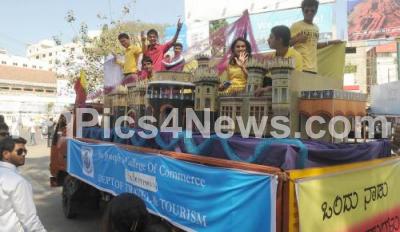 Photo Caption : BCom Tourism course students of St Josephs Commerce College participated in tourism rally in the " TURAS" an inter collegiate tourism festival at their college, in Bengaluru on Tuesday 3rd February 2015