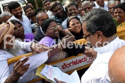 Photo Caption : Chief Minister Siddaramaiah listening to the grievances of the public gathered for Janata Darshan at Krishna, in Bengaluru on Wednesday 4th February 2015