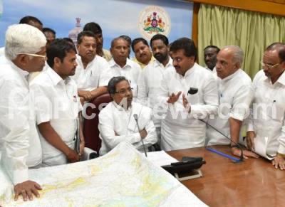 Photo Caption : Siddaramaiah, CM seen with M B Patil, Minister for Irrigation and delegations of Krishna Right Canal Construction and Tunga Badra Canal in a meeting at Krishna, in Bengaluru on Wednesday 4th February 2015