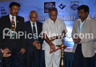 Photo Caption : Abhayachndra Jain, Minister for Youth Services and Fisheries with Dr C Vasudevappa, Vice Chancellor University of Agriculture and Horticultural Sciences Shimoga, Dr PE Vijay Anand, USSE team and Dr Shivakumar Magada, General Secretary PFGF seen inaugurating the “India Aquaculture Pathfinder Blue Paper Forum†at Hotel Lalit Ashok, organised by USSEC, in Bengaluru on Thursday 5th February 2015