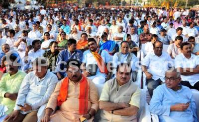 Photo Caption : Union Minister Ananth kumar with BJP Leaders at the Virat Hindu Samajotsava by Vishwa Hindu Parishad at National College Grounds, in Bangalore on Sunday 8th February 2015