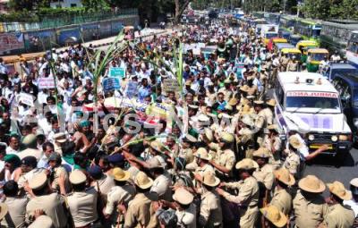 Event Description : Members of State Sugarcane Growers Association partake in protest rally from city railway station to Freedom Park, demanding to full fill their various demands, in Bengaluru on Monday 9th February 2015