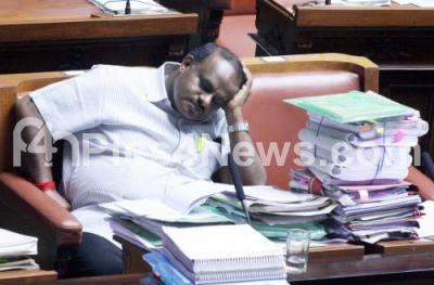 Photo Caption : Former CM HD Kumarswamy seen relaxing during Assembly session at Vidhan Soudha, in Bengaluru on Monday 9th February 2015