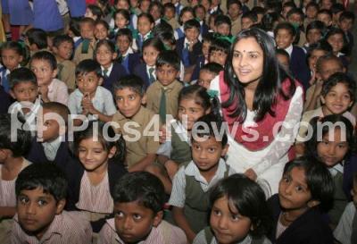 Photo Caption : Kannada Actress Ramya celebrating her birthday with Shobana Memorial School Students at Shobana Memorial High School, in Bangalore on Wednesday 28th Nov 2007
