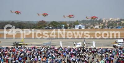Photo Caption : Sarang aircrafts display during Aero India Show 2015 at Yelhanka Airforce Station , in Bengaluru on Friday 20th February 2015