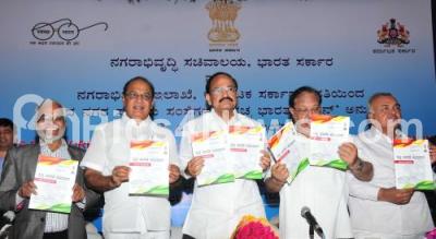 Photo Caption : Venkaiah Naidu, Union Minister for Urban Development with Ramalinga Reddy, Transport Minister, Vinay Kumar Sorake, Minister for Urban Development, Qamar ul Islam, Minister and others inaugurated the one day workshop on “Swachch Bharath Mission†at Capitol Hotel, in Bengaluru on Friday 20th February 2015