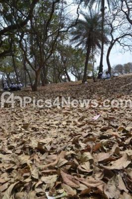 Photo Caption : Dry leaves scattered everywhere at Lalbagh, in Bengaluru on Saturday 28th February 2015