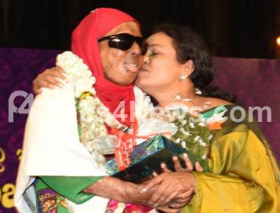 Photo Caption : Umashree minister seen hugging another lady during the Kitturu Rani Chennamma and Other Awards program on The occasion of International Womens Day, in Bengaluru on Sunday 8th March 2015