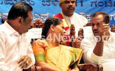 Photo Caption : Minister UT Khader with Mayor Shantakumari, Deputy Mayor Ranganna at the inauguration of Primary Health Centers under National Health mission at BBMP, in Bengaluru on Tuesday 10th March 2015