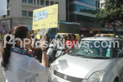 Photo Caption : An effort to address the issue of traffic and road safety, Childrens Movement for Civic Awareness and Bengaluru Traffic Police have partnered to bring , "Positive Strokes" a road safety program at MG road Circle near queens statue, in Bengaluru on Saturday 14th March 2015