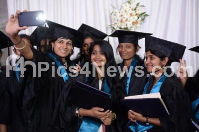 Photo Caption : Post graduate and bachelor of degree students seen taking a selfie during the 49th convocation of the University of Agricultural Sciences at GKVK, in Bengaluru on Saturday 14th March 2015