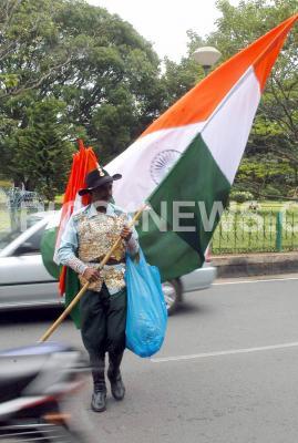 A flag seller with his stock going on sale due to the nearing of 15th August Independence Day, in Bangalore on Saturday 2nd August 2008