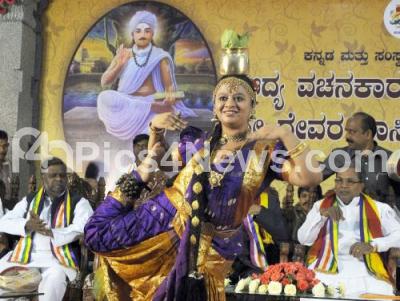 Photo Caption : CM Siddaramaiah with Ministers Anjenaiah seen watching cultural dance during "Sri Devara Dasimaiah Jayanti" at Banquet Hall, Vidhana Soudha, organized by Kannnada and Culture Department, in Bengaluru on Wednesday 25th March 2015
