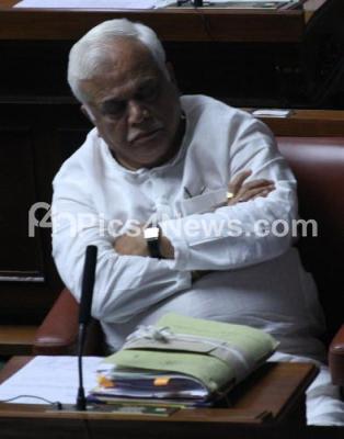 Photo Caption : RV Deshpande, Minister seen taking a nap during the Assembly Session at Vidhan Soudha, in Bengaluru on Monday 30th March 2015