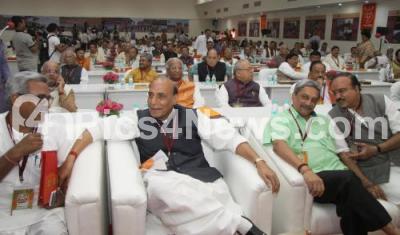 Photo Caption : Rajnath Singh, Home Minister seen with BJP Union Ministers and National leaders during inauguration of 2 day BJP National Executive meeting at Hotel Lalit Ashok, in Bengaluru on Friday 3rd April 2015