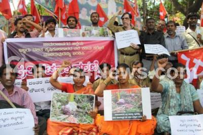 Event Description : Members of CPIM seen protesting against the atrocities on the Dalits, the protest was held at SBM circle, in Bengaluru on Monday 6th April 2015