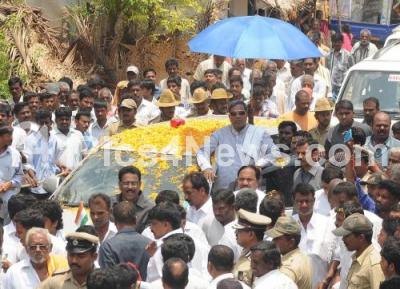 Photo Caption : CM Siddharamaiah being given a rousing welcome on his arrival at Udboor this morning, in Mysuru on Tuesday 7th April 2015 Pics: www.pics4news.com