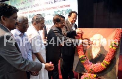 Event Description : Dr BT Rudresh, President Karnataka Homeopathy Board with Dr HR Nagendra, Vice Chancellor, Sri Vivekananda Yoga University and Dr KS Ravindranath, Vice Chancellor, Rajiv Gandhi Health University at the "World Homeopathy Day" and paid their tribute to the founder and father of Homeopathy Dr Friedrich Samuel Hahnemann on his 260th birthday, at Rajiv Gandhi University, in Bengaluru on Friday 10th April 2015