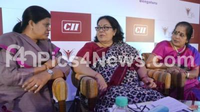 Event Description : Lalitha Kumaramangalam, Chiarperson National Commission for Women with Suchitra Ella, Chiarwoman IWN and Usha Ananthasubramanian, CMD Bharatiya Mahila Bank seen at the Indian Women Network second annual day program on Celebrating Women Leadership, organized by CII at JW Marriot Hotel, in Bengaluru on Saturday 11th April 2015