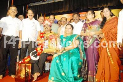 Photo Caption : Dr Kikkeri Krishnamurthy being felicitated by CS Puttaraju, N Cheluvarayaswamy, YK Muddukrishna, TN Seetharam MN Vyasa Rao, TA Saravana and others at Gayana Samaj Auditorium, in Bangalore on Tuesday 14th April 2015
