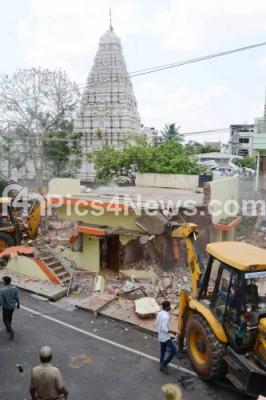 Photo Caption : Demolition drive at Sarakki lake bed near JP Nagar by high court order, in one of the biggest operation many unauthorized houses, schools, apartments, ashrams and temples were raised to ground, in Bengaluru on Thursday 16th April 2015